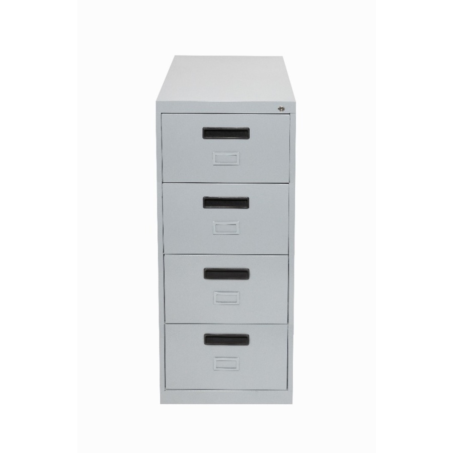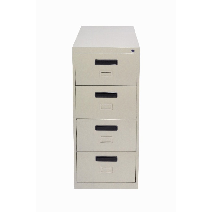 - Cada gaveta cuenta con una estiradera de plástico empotrada, una porta etiqueta metálica, un par de soleras para poder colgar un folder tamaño oficio.