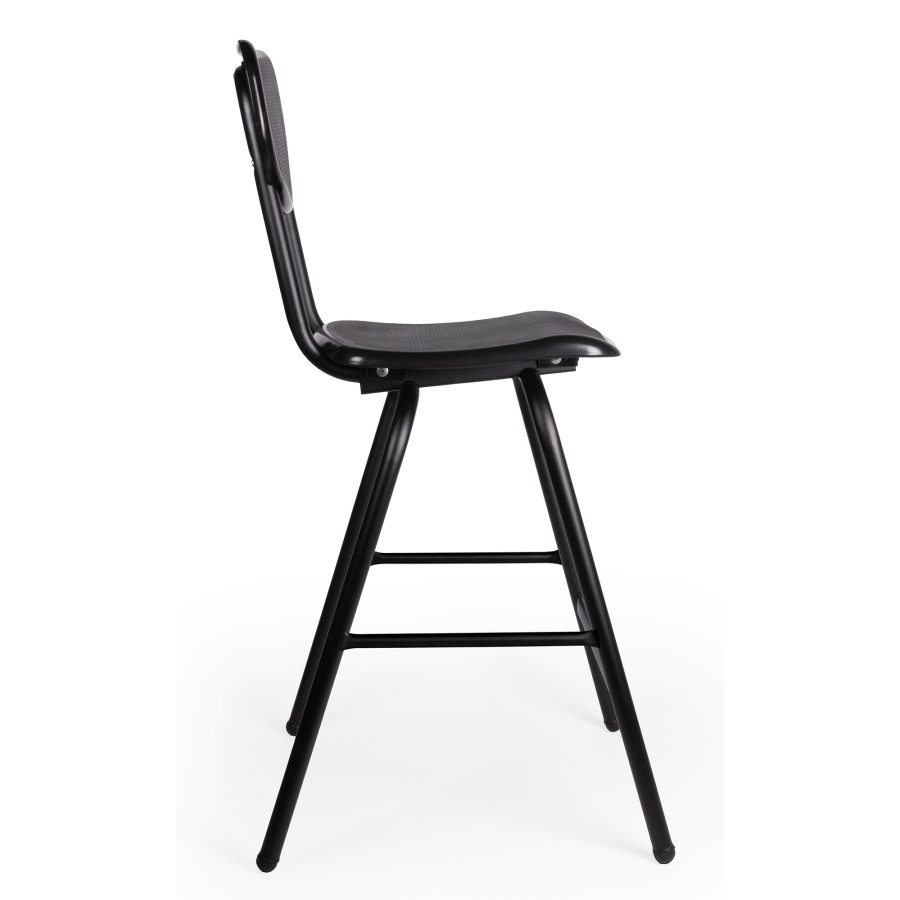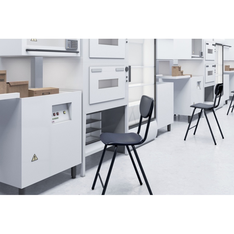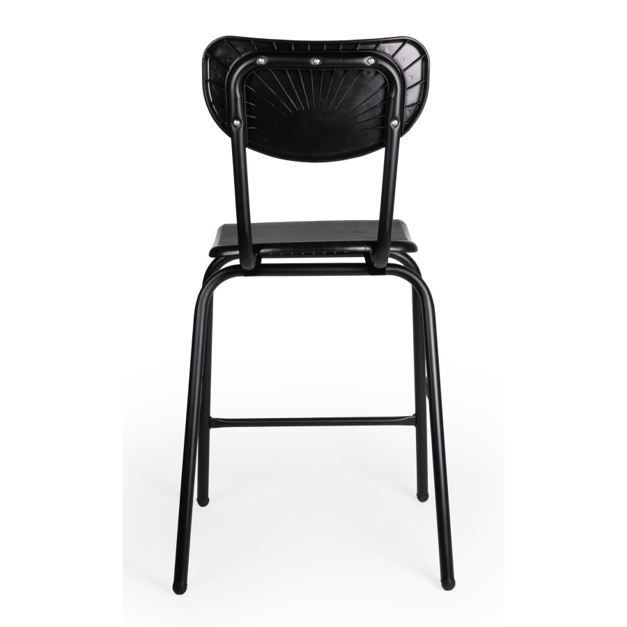 estructura: Tubular de 1' redondo calibre 18, travesaño de 3/4', sujeción del asiento por medio de placas tipo Z en perfil de acero calibre 14. asiento y respaldo: en copolimero de polipropileno con UV, retardante de flama y libre de metales pesados. Acabado antiderrapante. color: negro. resistencia: peso sugerido 120 Kgs.