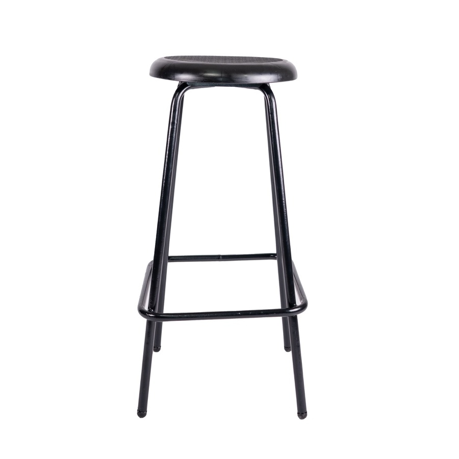 estructura: de acero tubular de 3/4" de diámetro, calibre 20; con acabado de pintura epóxica (electrostática) color negro. asiento: en polipropileno de alta resistencia y duración. color de asiento: negro. resistencia: peso sugerido 120 kgs.