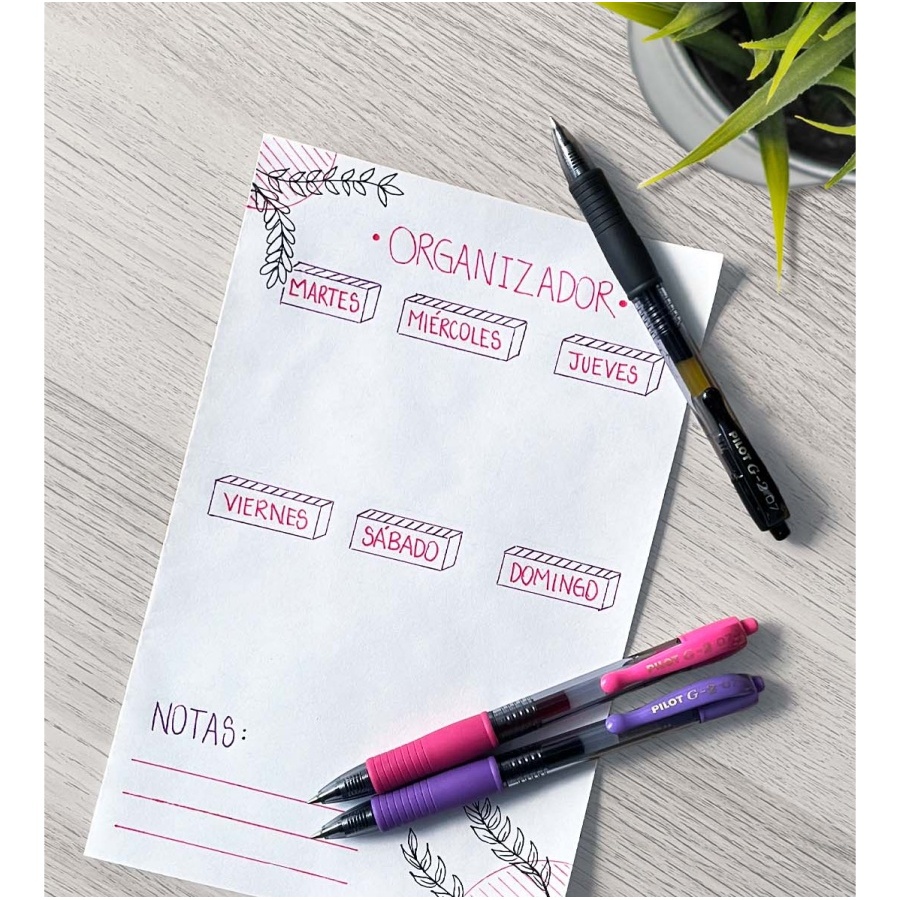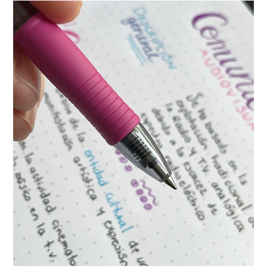- Bolígrafo retráctil con punta rodante y tinta de gel.