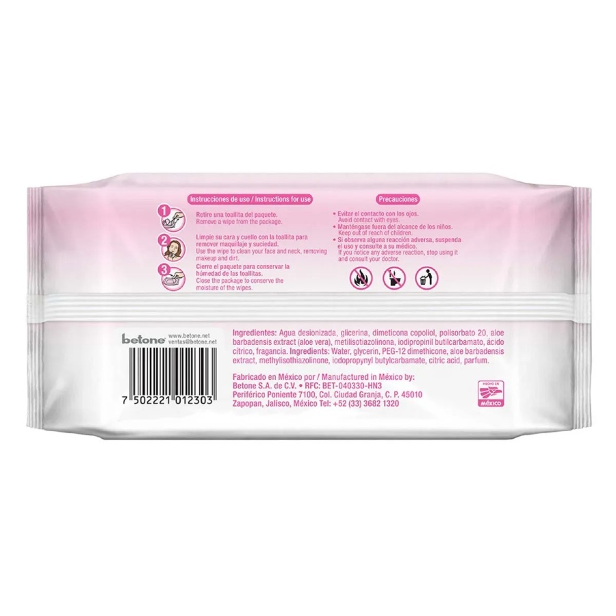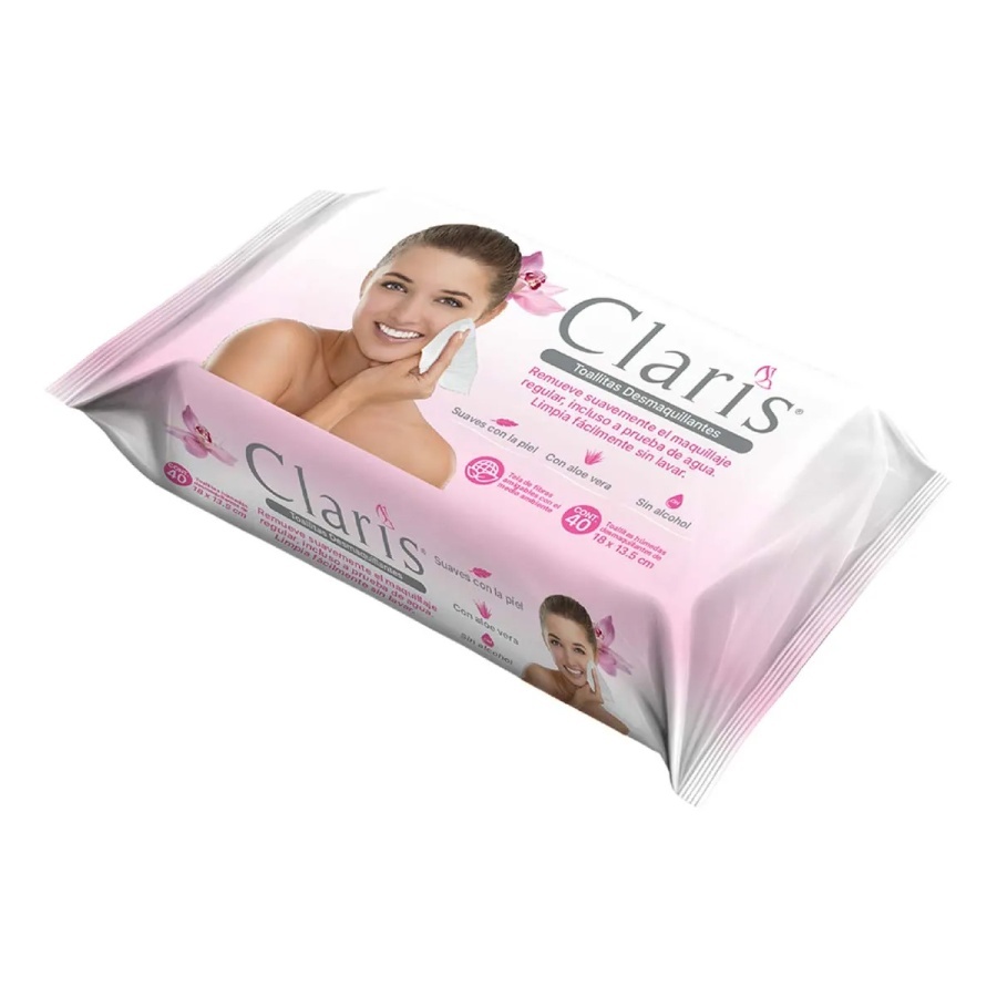 Toallitas desmaquillantes Claris, retira suavemente el maquillaje sin necesidad de enjuagar, para todo tipo de piel.