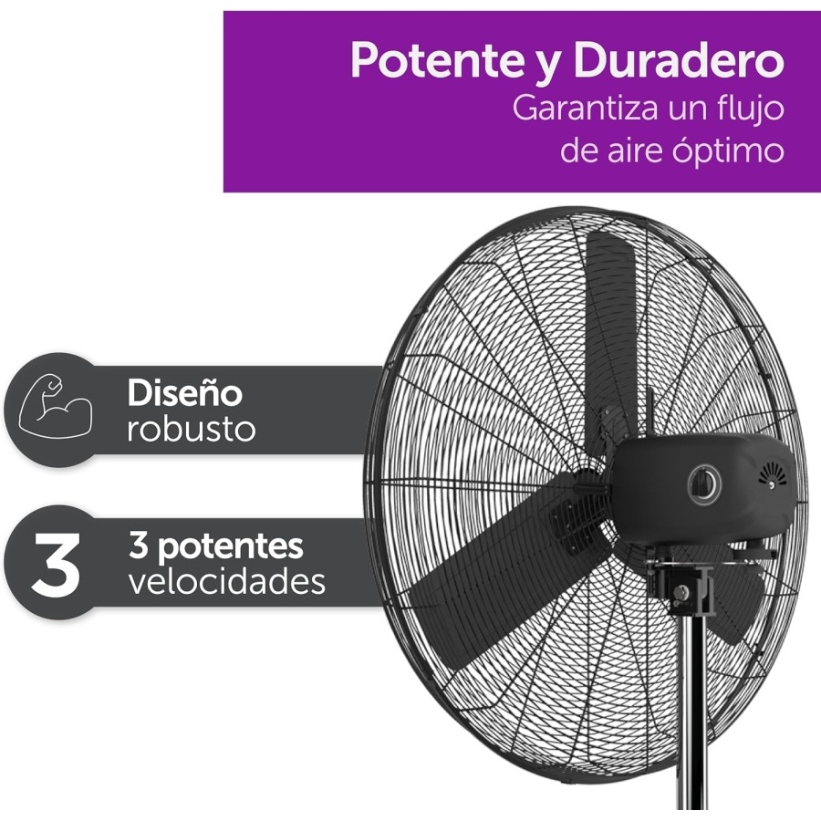 Gran tamañoCon un diámetro de 30“ sus aspas generan un flujo de aire impresionante que puede abarcar grandes áreas. |