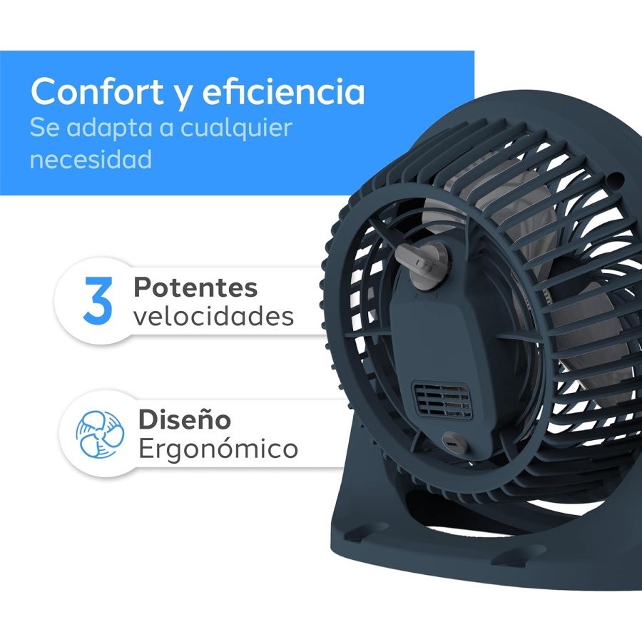 ![]() VelocidadesTres cómodas velocidades por medio de una perilla. | ![]() Ideal para escritoriosSu tamaño 28.5 cm lo hace perfecto para tu escritorio | ![]() LigeroSu peso de tan sólo 1.4 kg lo hace bastante ligero. |