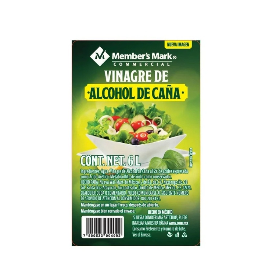 - Ingredientes: Agua, vinagre de alcohol de caña al 5% de acidez expresada como ácido acético, metabisulfito de sodio como conservador.